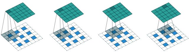 在SRCNN将CNN引入超分辨重建领域后,研究者们开始考虑如何利用“卷积”来解决更深入的问题。如果对一幅高分辨率图片做高斯平滑或是降采样可以等效为卷积操作,那么由降采样后低分辨率图片恢复高分辨率的过程则相应的等效为反卷积操作(deconvolution)。此时我们的计算任务是学习合适的解卷积核,从低分辨率图片中恢复高分辨率图像。CNN中反卷积层的标准做法如图4所示,对一幅低分辨率图片填充零值(zero padding),即以每一个像素点位置为中心,周围2×2或3×3邻域填充0,再以一定尺寸的卷积核进行卷积操作。