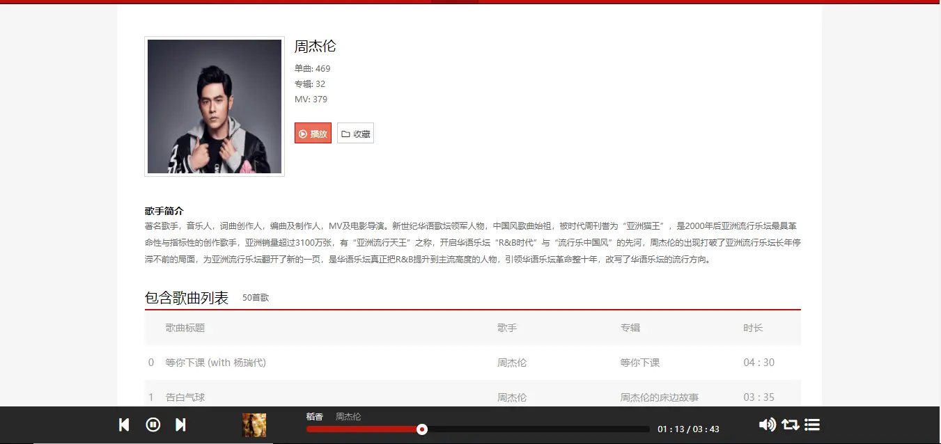 - 歌手展示/详情页