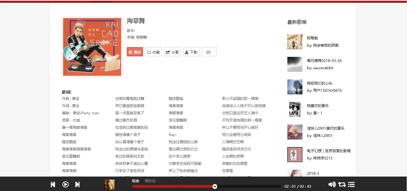 - 单曲详情页