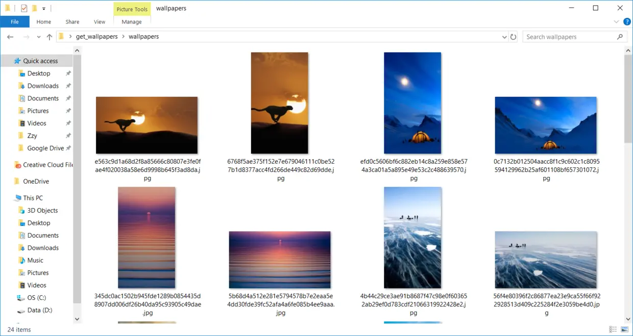 执行上面这段Python代码,再打开wallpapers文件夹,就可以看到提取出的锁屏图片了。