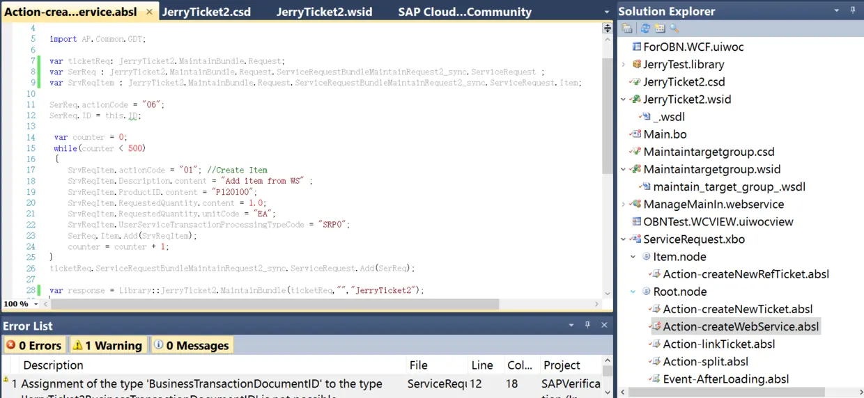 需求:在C4C UI里创建web service(maintain ticket),然后通过ABSL代码消费。