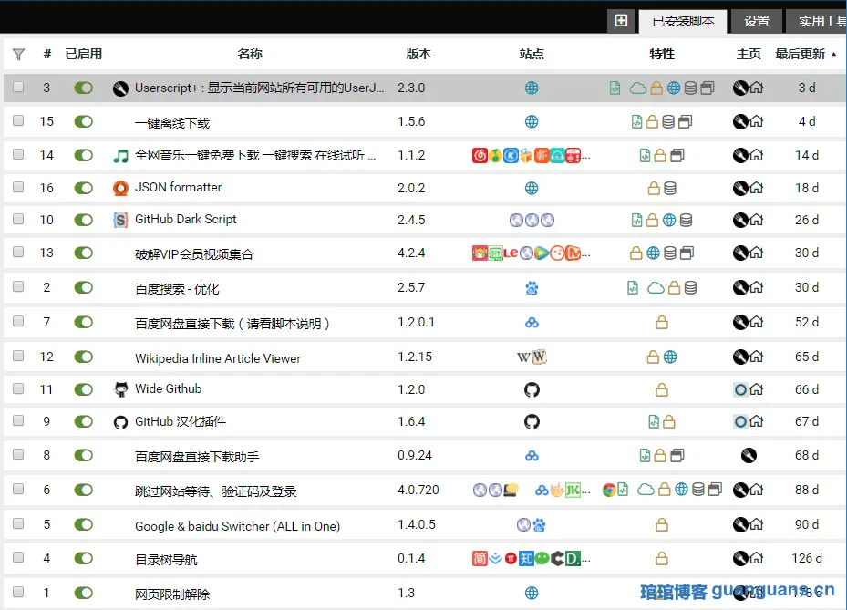 - Userscript+ - 显示当前网站所有可用的油猴脚本。