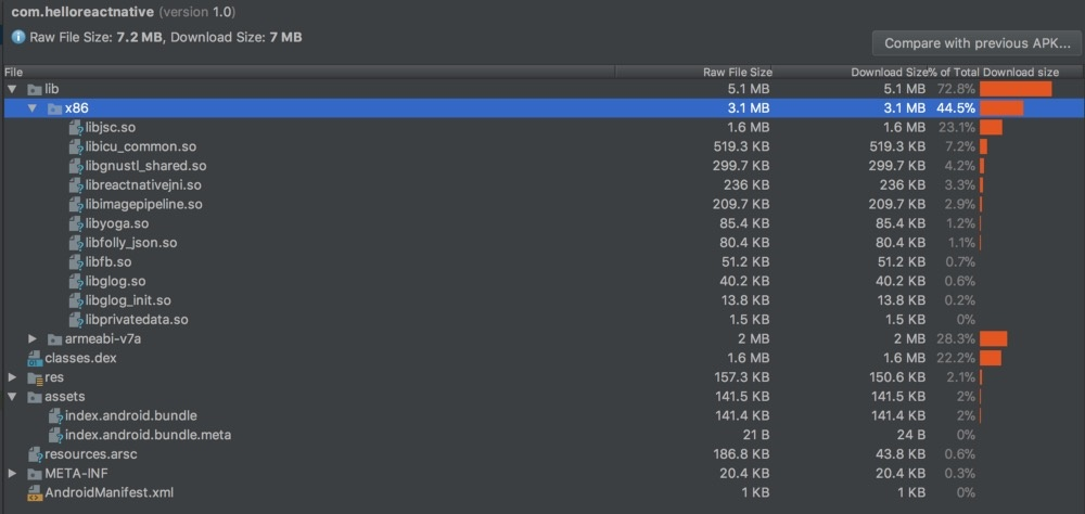 它还在 x86 和 armeabi-v7a 的 lib 目录中添加了一些 so 库。总共添加了大约 6.4 MB 的空间。