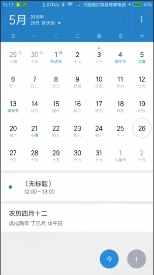 使用 CoordinateLayout 可以协调它的子布局,实现滑动效果的联动,它的滑动效果由 Behavior 实现。以前用过小米日历,对它滑动平滑切换日月视图的效果印象深刻。本文尝试用自定义 Behavior 实现一个带有这种效果的日历。
