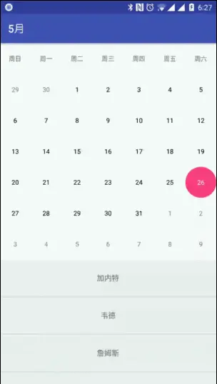MaterialCalendarView 的视图切换会有一点点卡顿,但还是能接受的。