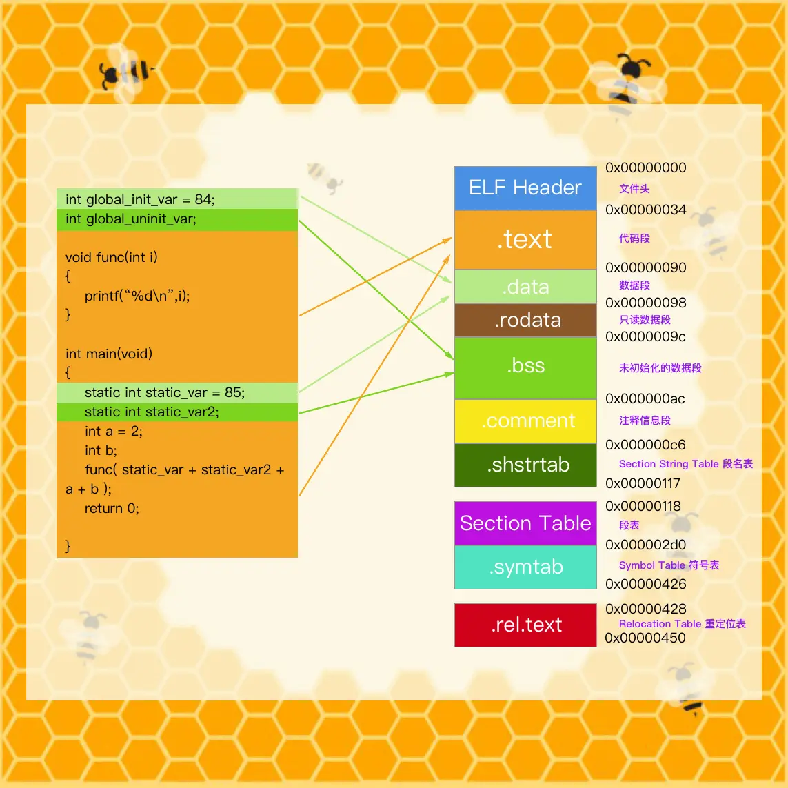编译器编译源代码后生成的文件叫目标文件,从文件结构上来说,它已经是编译后可执行的文件格式,只是还没有经过链接的过程。可执行文件(Executable)主要是Windows下的PE(Portable Executable)和Linux的ELF(Executable Linkable Format),它们也都是COFF(Common file format)格式的变种。程序源程序代码被编译之后会主要分成两个段:程序指令和程序数据。代码段属于程序指令,数据段和.bss段属于数据段。