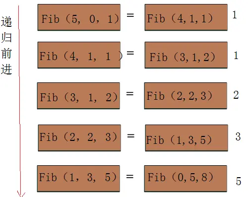 它的执行步骤如下,每次的n1就是要求当前的返回值,当执行到n减到0的时候,此时的n1就是我们要求的第n个数: