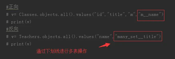 # ret2=Classes.objects.all().values("title","feng_set__username")