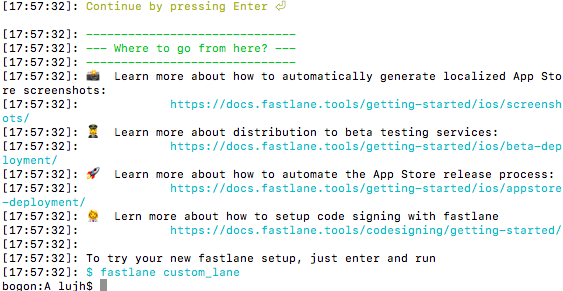 可以看到Fastlane版本信息,我的是fastlane 2.84.0