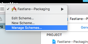 scheme: “Fastlane--Packaging”, #指定项目的scheme名称