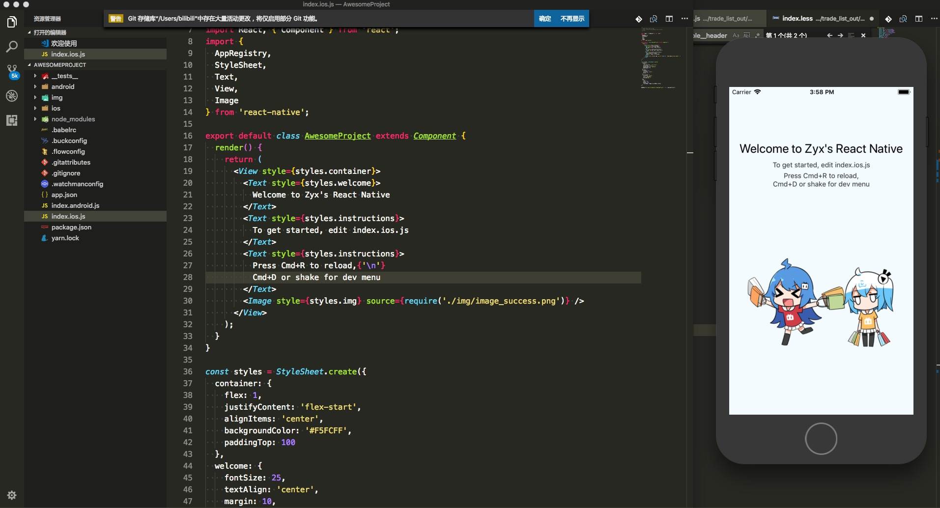 react-native init AwesomeProject --version 0.44.3b.下载第三方库 网盘链接 下载完成后,放置到