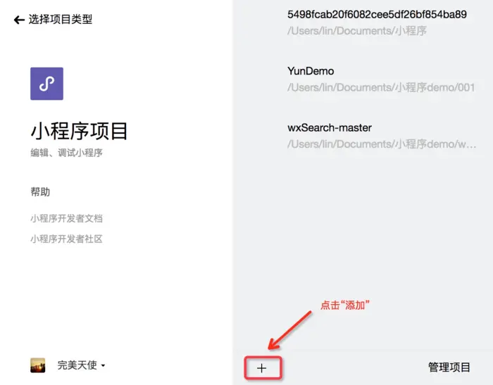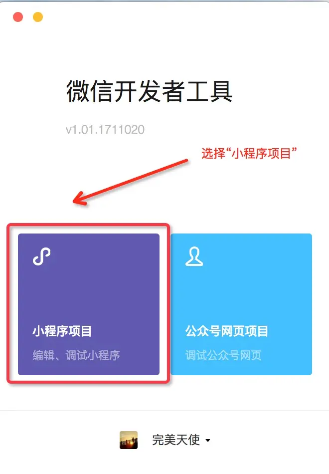 安装完成后,选择“小程序项目”