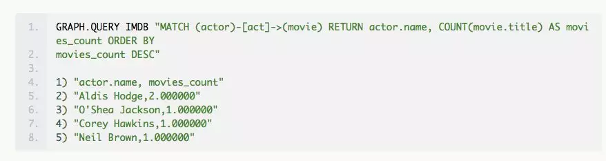 GRAPH.QUERY <graph_id> <query>下面我们在所创建的电影图数据上执行一系列查询。