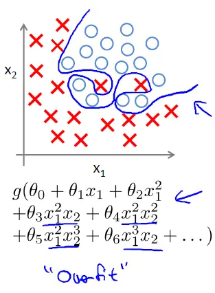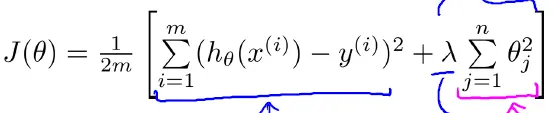 为防止过度拟合的模型出现(过于复杂的模型),在损失函数里增加一个每个特征的惩罚因子。这个就是正则化。如正则化的线性回归 的 损失函数: