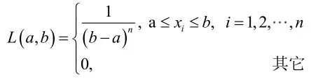 很显然,L(a,b)作为a和b的二元函数是不连续的,这时不能用导数来求解。而必须从极大似然估计的定义出发,求L(a,b)的最大值,为使L(a,b)达到最大,b-a应该尽可能地小,但b又不能小于,否则,L(a,b)=0。类似地a不能大过