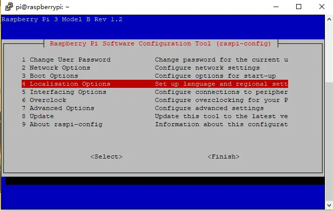 sudo raspi-config - 选择Localisation Options选项