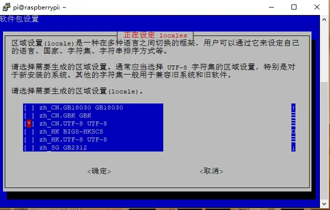 - 按PgDn键下拉至zh_CN.UTF-8,按空格键选定,回车建确认