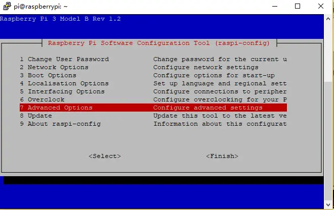 sudo raspi-config - 选择Advanced Options选项