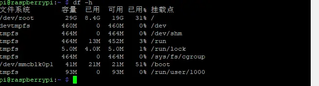 df -h - 可见文件系统已扩展至全SD卡。