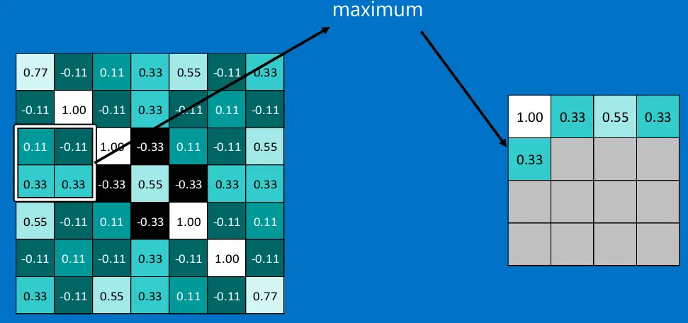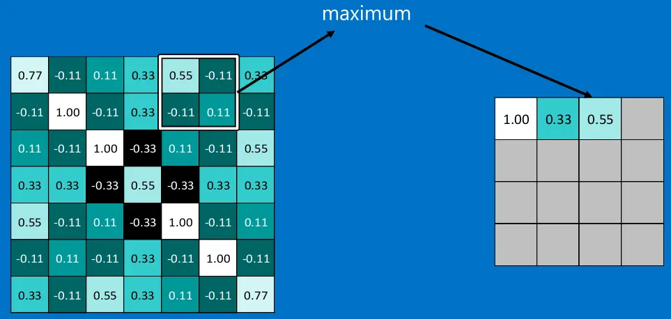 经过最大池化操作(比如2*2大小)之后,一幅图就缩小为原来的四分之一了: