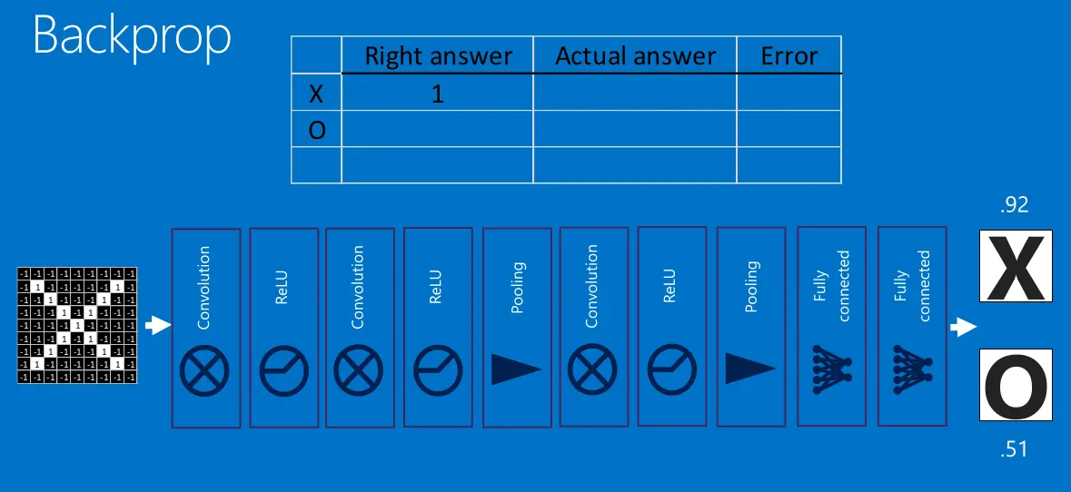 这一整个过程,从前到后,被称作”前向传播“,得到一组输出,然后通过反向传播来不断纠正错误,进行学习。