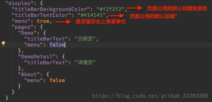 "titleBarText": "Demo页面的标题"