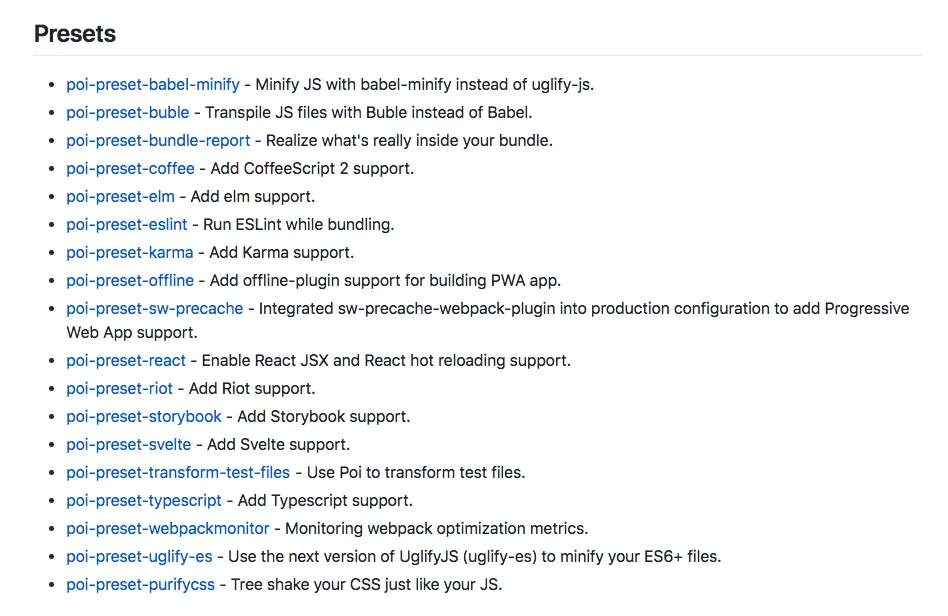无论是一个从头开始的工具(如parcel),还是基于现有成熟方案开发的工具(如 react-scripts 和 poi ),一个好的构建工具,我认为是这样的:在将 API 设计得足够简单的同时,仍然保留其全部的拓展能力。从这一点上看,我认为egoist和她的poi做的相当好。