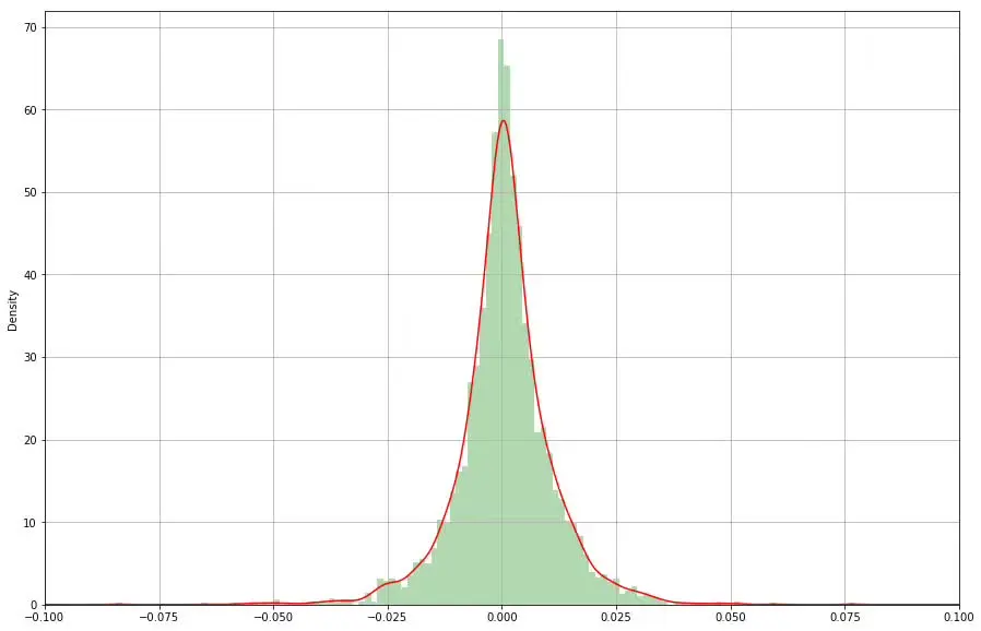 我们可以看到,涨跌幅的分布是一个比较标准的正态分布,中间高两边小,而且对于XAUUSD来说,因为有高达两百倍这样的杠杆比率的存在,我们看来很小的一些涨跌幅波动,对于炒外汇的人来说,那一上一下就是好几个亿啊!