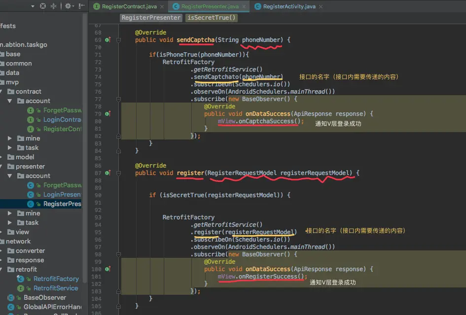 在一个界面中可能需要对不只一个接口,比如:获取验证码接口 + 注册接口