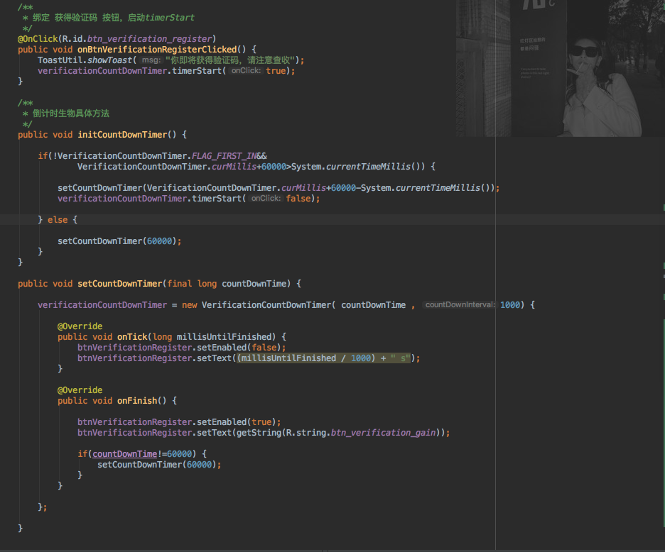 - initCountDownTimer();方法是在一开始就进行了初始化调用