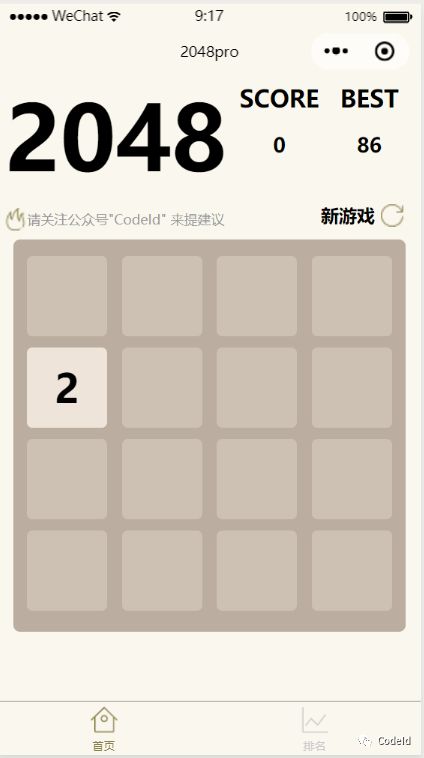 很高兴又和大家见面了,最近写了个小游戏——2048,这个游戏实现起来不是很难,感觉它对自己的逻辑能力起到一个训练作用,还不错,所以今天分享给大家。我是通过小程序写的,源码已经放到GitHub上了https://github.com/CrazyIdeas1/WeiXinXiaoChengXu_2048Pro。这篇文章的讲解顺序是先分析 2048然后通过代码实现里面的主要功能。