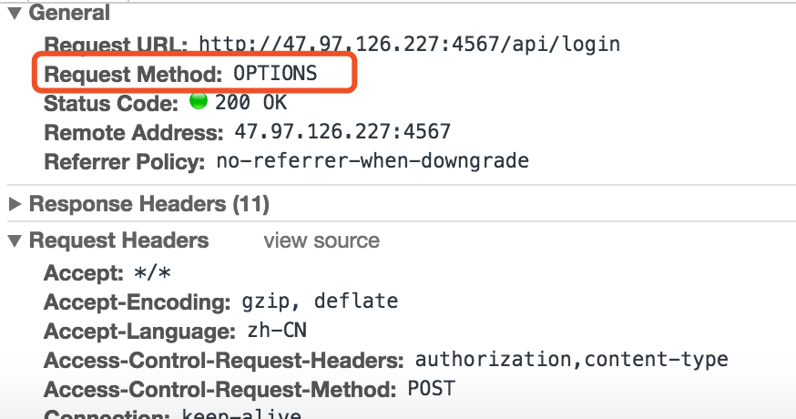今天在联调接口的时候,发现了一个奇怪的错误Request header field Authorization is not allowed by Access-Control-Allow-Headers in preflight response