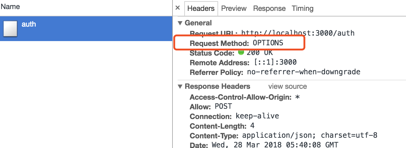 会发送如图所示的预检请求: