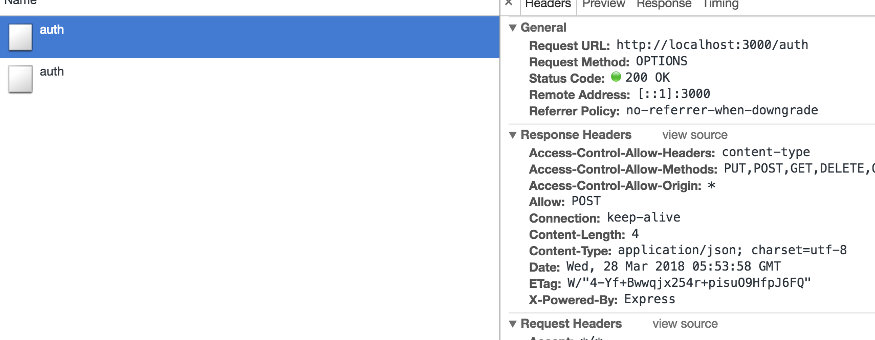 res.header("Access-Control-Allow-Headers", "content-type");