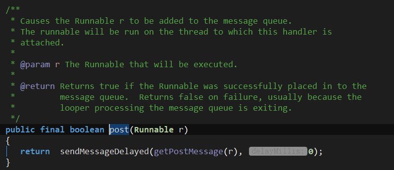 前面主要讲解了 Handler.sendMessage(Message msg) 这种常规使用方式,实际上,我们有时候也会用 Handler.post(Runnable r) 进行处理,我们当然应该看看里面是怎么处理的。