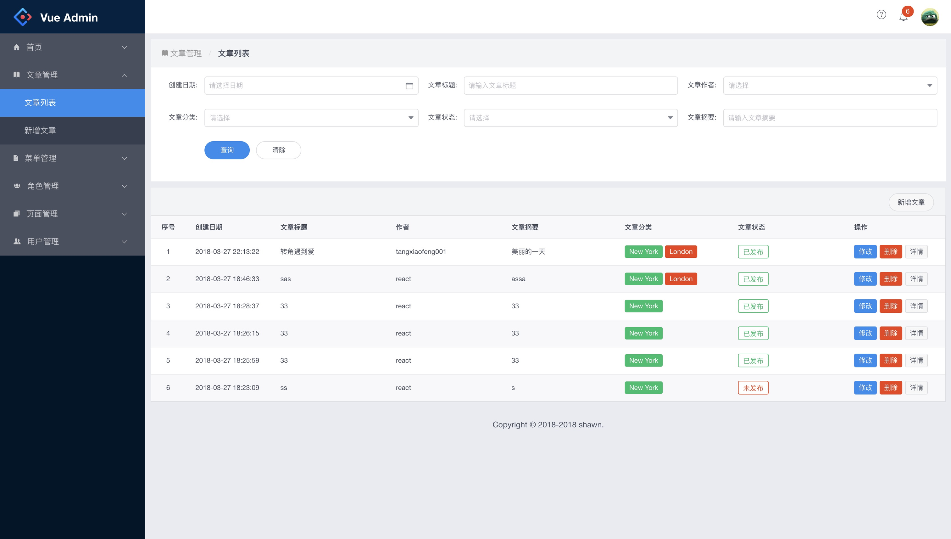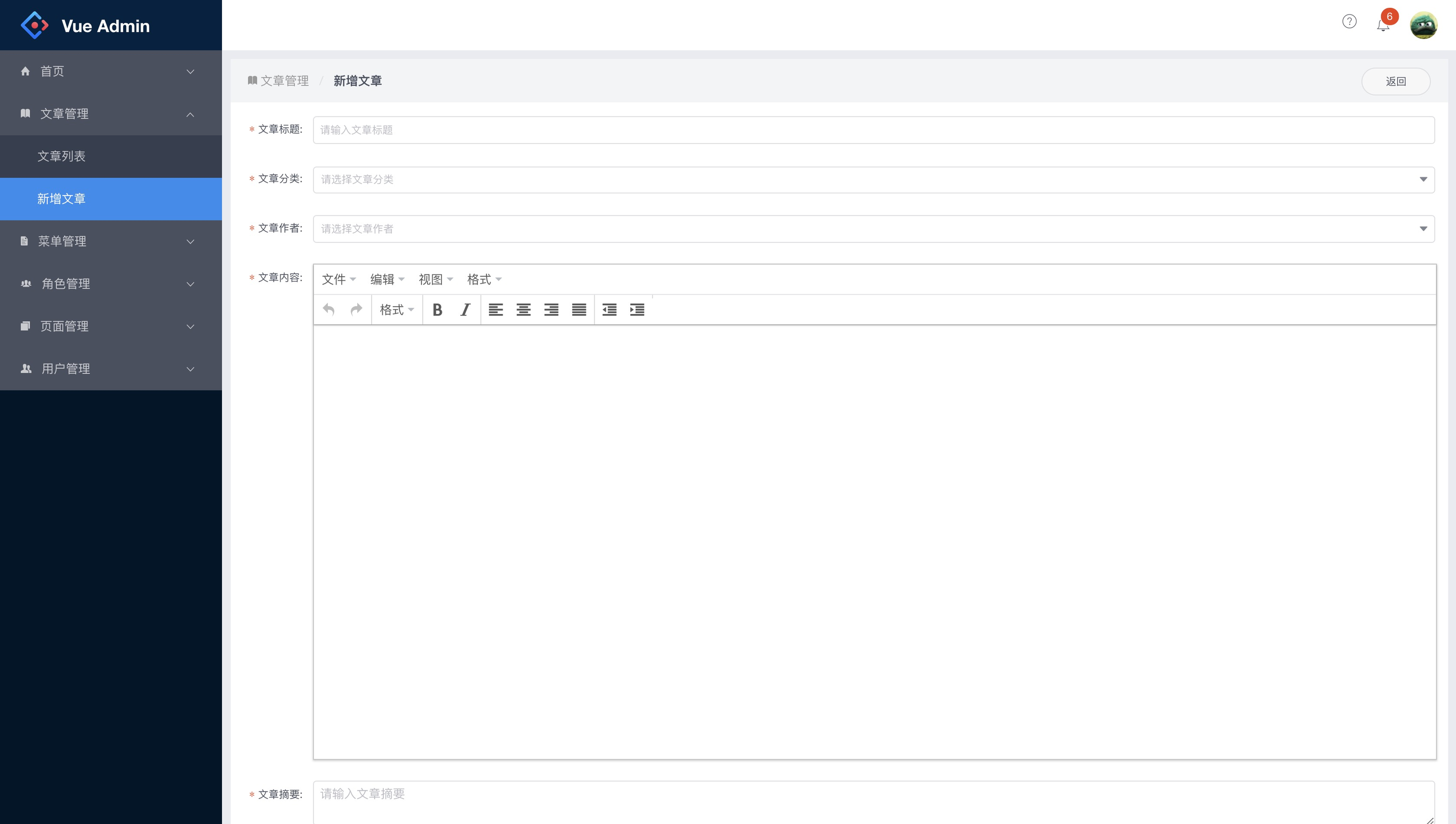 - 文章管理(文章列表+新增文章)