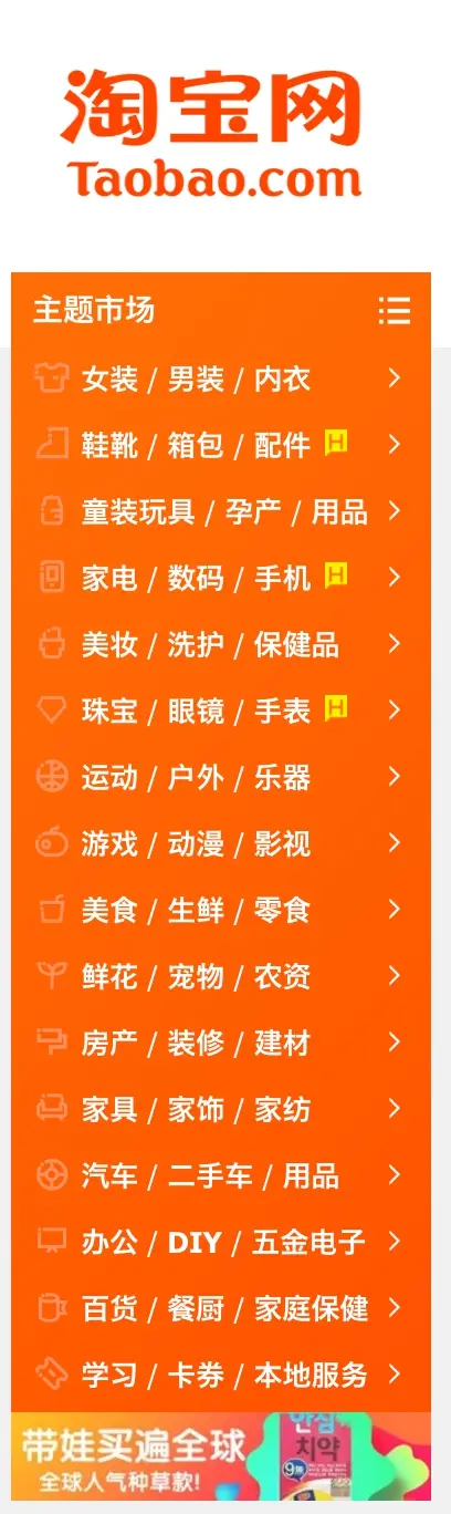 比如,要查找淘宝左侧导航条的所有条目,如图7-3所示。
