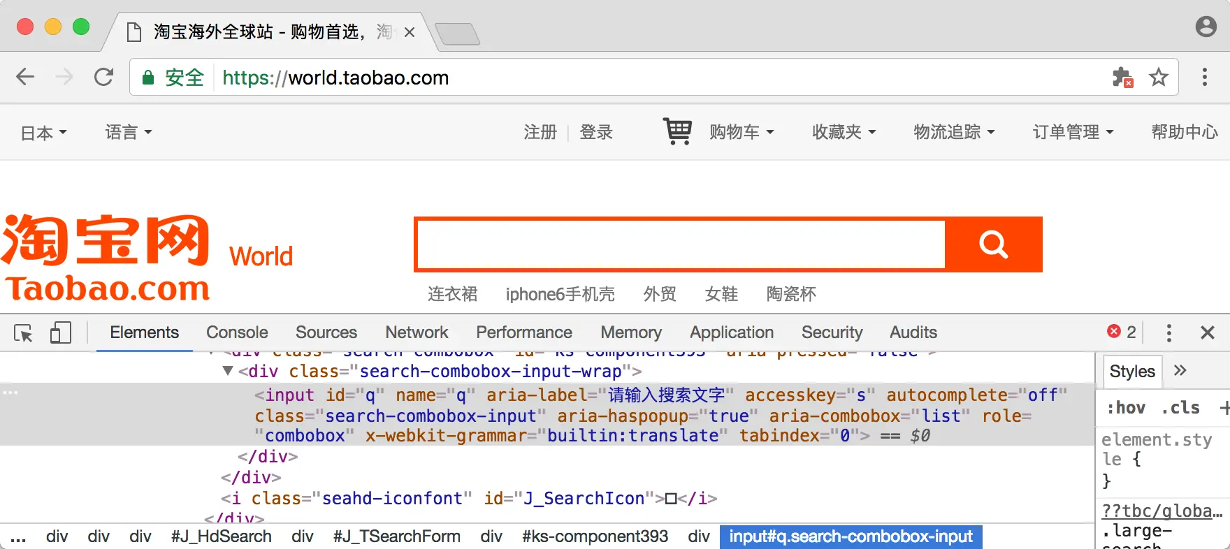 可以发现,它的id是q,name也是q。此外,还有许多其他属性,此时我们就可以用多种方式获取它了。比如,find_element_by_name()是根据name值获取,find_element_by_id()是根据id获取。另外,还有根据XPath、CSS选择器等获取的方式。