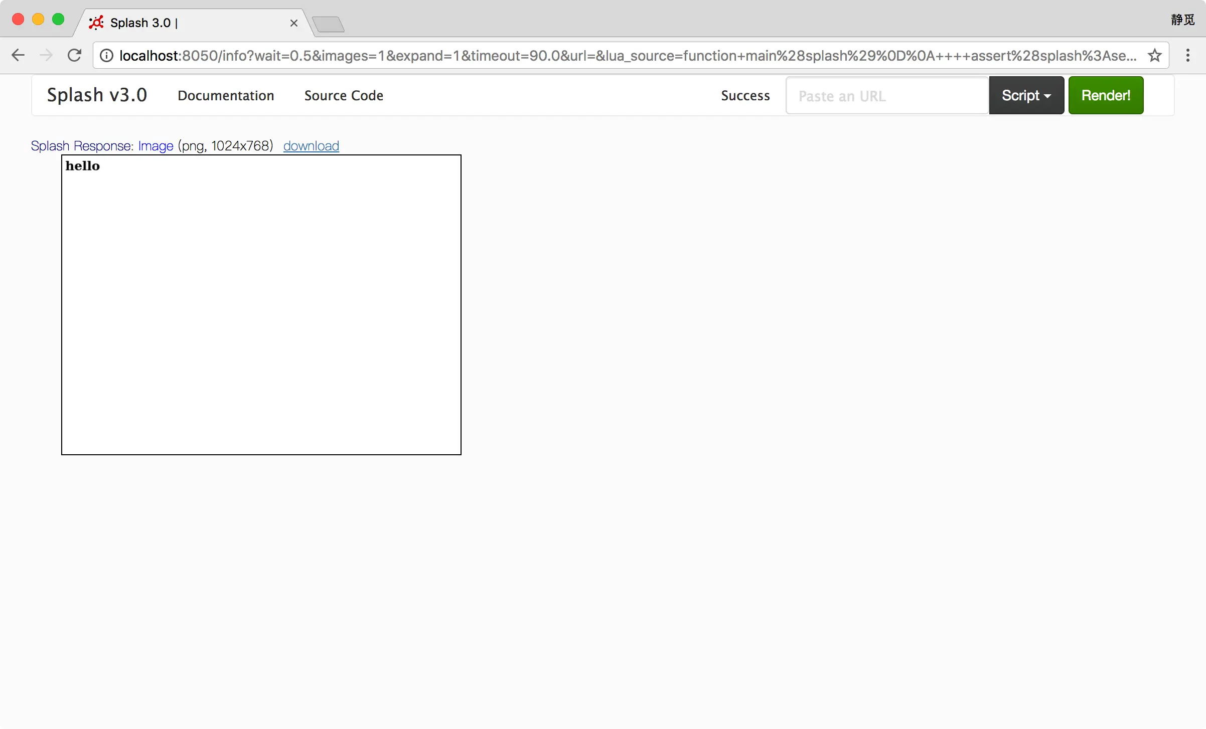 123function main(splash) return 'hello'end返回了一个字符串形式的内容。