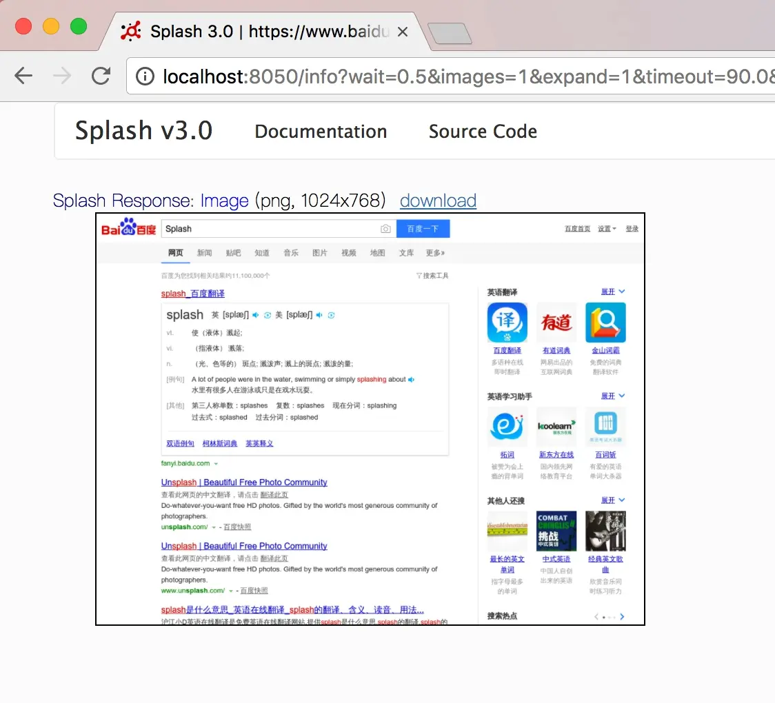 1 | curl http://localhost:8050/render.html?url=https://www.baidu.com |