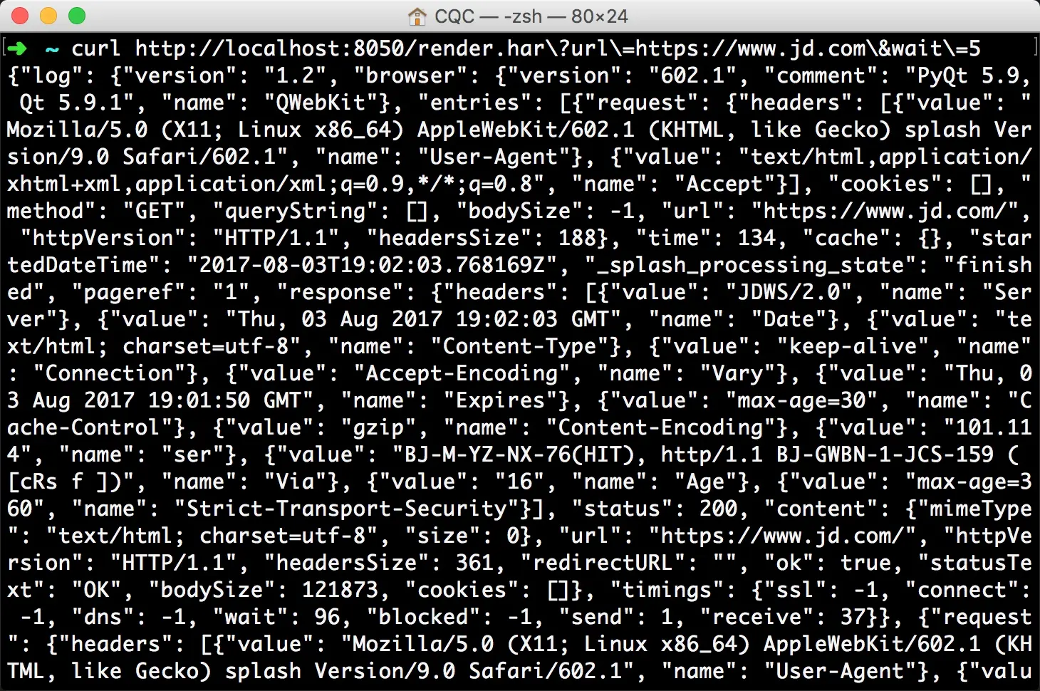 1 | curl http://localhost:8050/render.har?url=https://www.jd.com&wait=5 |
