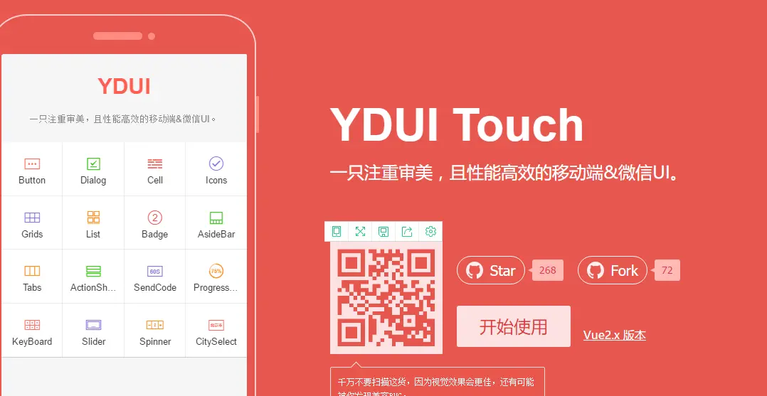 YDUI Touch 专为移动端打造,在技术实现、交互设计上兼容主流移动设备,保证代码轻、性能高;使用 Flex 技术,灵活自如地对齐、收缩、扩展元素,轻松搞定移动页面布局;实现强大的屏幕适配布局,等比例适配所有屏幕。什么?用得不开心?轻松切换 px;自定义JavaScript组件、Less文件、Less变量,定制一份属于自己的YDUI;
