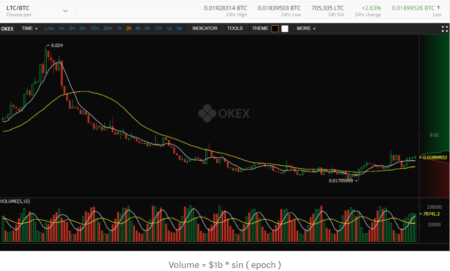 - 比较OKex声称的交易量和步骤二里的预测量的差值 小伙根据不同交易对的Volatility,减少了售卖量,从50000美金到20000美金