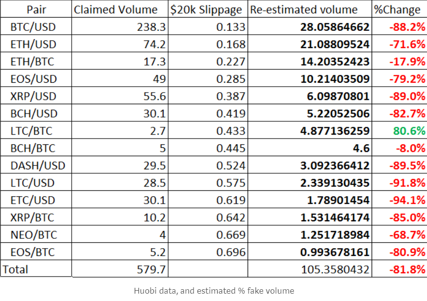 Huobi 81.8% of made-up volume