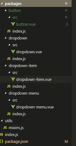 3.写入button.vue、dropdown.vue、dropdown-ment.vue、dropdown-item.vue初始元素架构,准备开发了