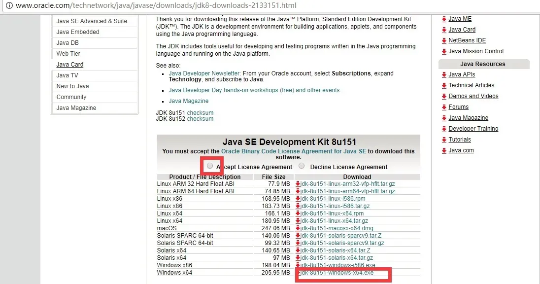 可以直接取Oracle官网选择相应的JDK版本进行下载,如操作系统是32就选择x86的安装包下载,如果是64位的就选择x64的进行下载。或者直接通过我上一章节的网盘链接可以直接下载到。