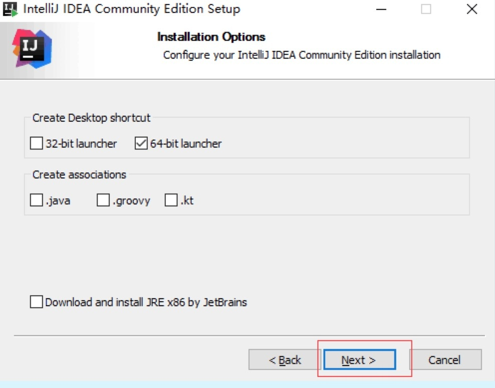 双击安装文件,安装提示一步步完成安装即可。其中创建桌面快捷方式这一步需要勾选下,根据JDK的位数选择勾选对应的位数即可,因为我按照的JDK是64位的,这里就勾选64-bit launch即可,如下所示: