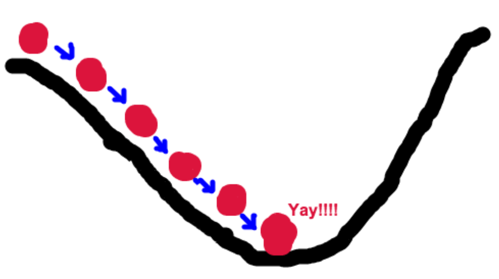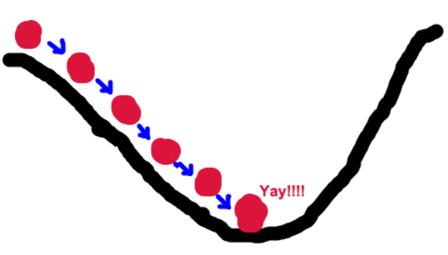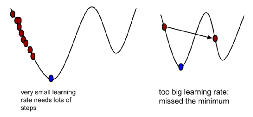 我们同时可以假设这座山最陡峭的地方是无法通过肉眼立马观察出来的,而是需要一个复杂的工具来测量,同时,这个人此时正好拥有测量出最陡峭方向的能力。所以,此人每走一段距离,都需要一段时间来测量所在位置最陡峭的方向,这是比较耗时的。那么为了在太阳下山之前到达山底,就要尽可能的减少测量方向的次数。这是一个两难的选择,如果测量的频繁,可以保证下山的方向是绝对正确的,但又非常耗时,如果测量的过少,又有偏离轨道的风险。所以需要找到一个合适的测量方向的频率,来确保下山的方向不错误,同时又不至于耗时太多!