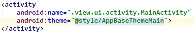 4.在清单文件( AndroidManifest )文件中,为主Activity(就是主界面的activity 如MainActivity)的theme属性所对应的style样式中,添加如下代码: