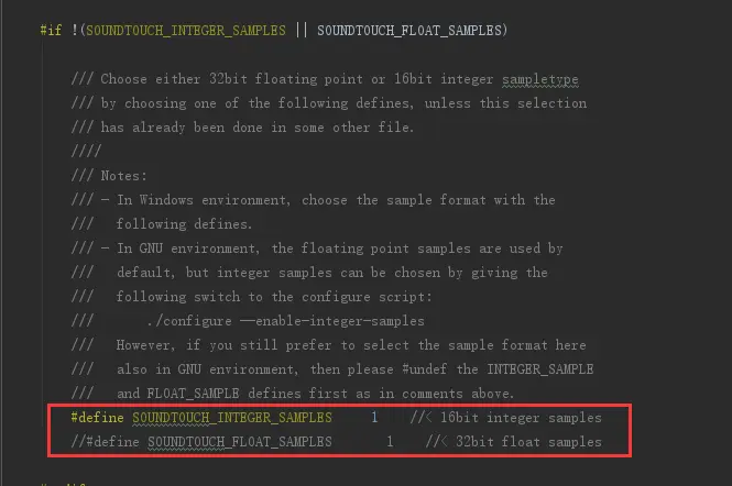 2.1、因为SoundTouch默认是float(32bit)格式的数据,这里需要先改成short(16bit)的格式。打开STTypes.h文件,修改如下代码: